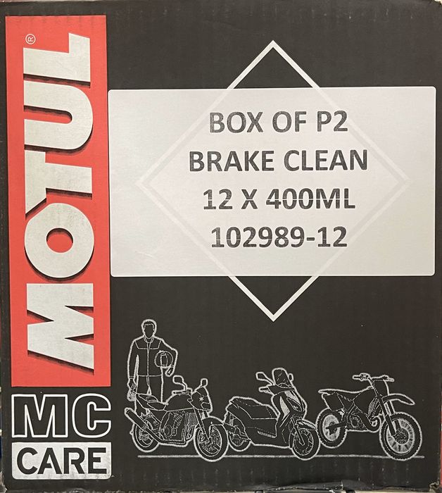 BOX OF P2 BRAKE CLEAN 400ml P2 Brake Clean is a very powerful non-chlorinated degreaser for brake discs and drums, clutches, spark plugs. Effectively removes oil, grease, brake fluid, tar and dust.