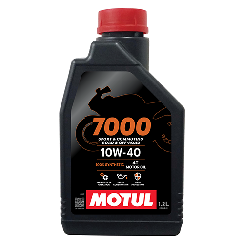 "Motul 7000 4T is a 100% Synthetic lubricant for improved oil film resistance at high temperatures and high RPM, it has excellent temperature resistance against oxidation to avoid premature oil thickening and a special additive technology which provides good friction properties, deposit, and wear protection for increased engine life. Anti-wear technology provides outstanding gearbox durability and high detergent & dispersant properties for a clean and durable engine. JASO MA2 high friction performance ensures the perfect clutch lock up at start-up, acceleration and full speed along with easy gear shifting. "