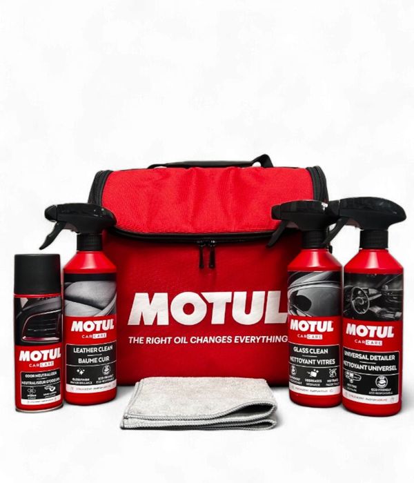 All packed inside our Motul Cooler Bag is our Motul Car Care Interior cleaning kit. This kit includes our Leather Clean, Odor Neutralizer, Universal Detailer & Glass Clean. Paired with our Microfiber Cloth.