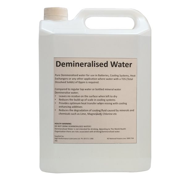 Demineralised water for use in all cooling systems which require water added to the system, with or without cooling additives such as antifreeze or MoCool. Also can be used in window washing systems and for batteries. Excellent for use when wshing vehicles and windows for a spot-free finish without drying off.